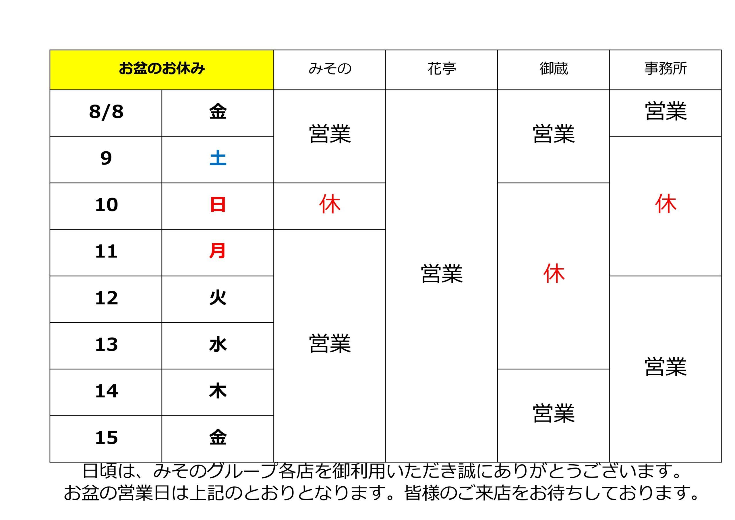 お盆期間中の各店営業日のご案内 2025.07.29 Tweet Share RSS feedly Pin it 和魂洋彩コースが始まります 【イベント】お食事と昭和歌謡inみその 新着記事 お知らせ一覧 2025.12.01 会席コースが新しくなります 2025.11.27 ふぐ・かき 料理取り揃えております! 2025.11.27 初雪の旬菜・板前メニュー始まります 2025.11.26 年末年始の営業予定 2025.11.04 会席コースが新しくなります
