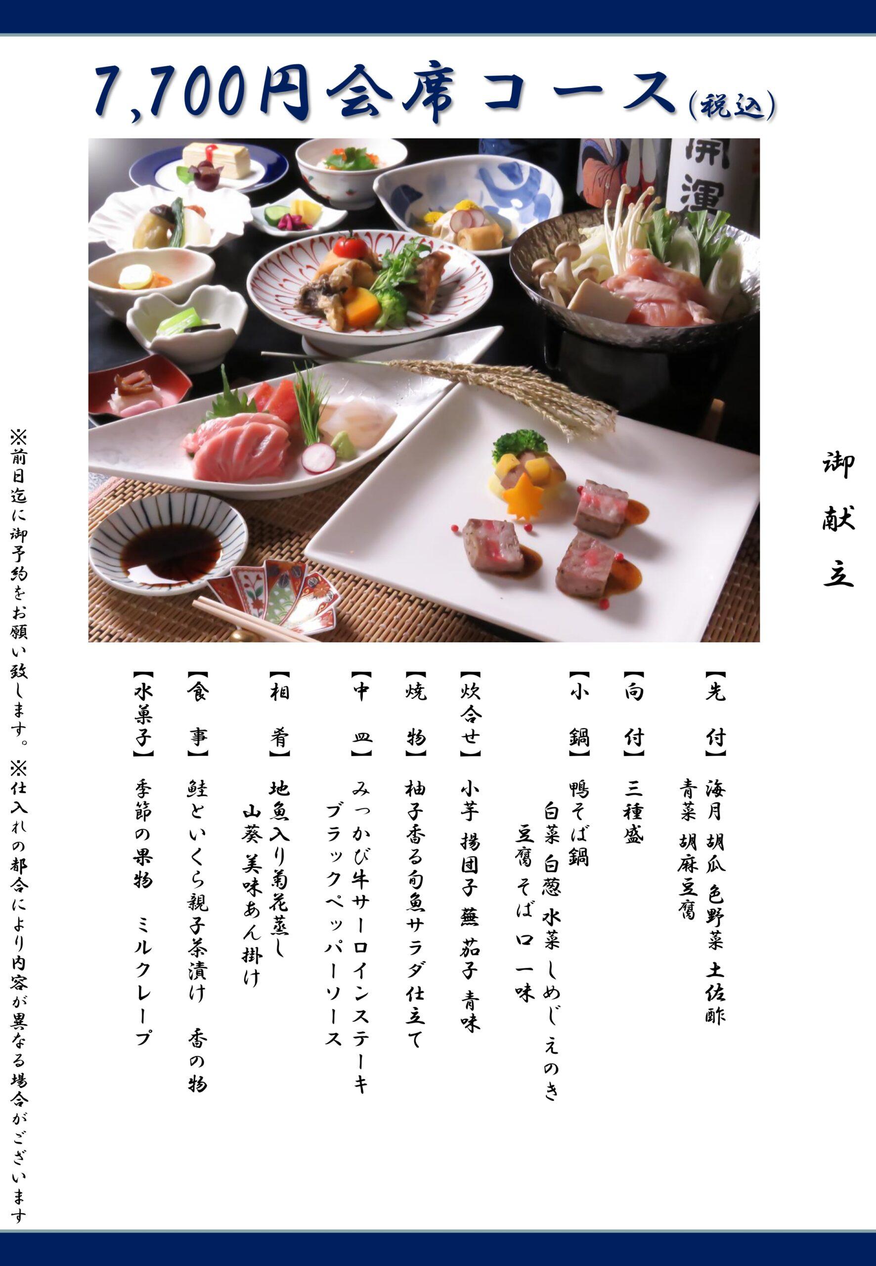 11/5より7700円の会席コース料理が新しくなります。ご予約お待ちいたしております!