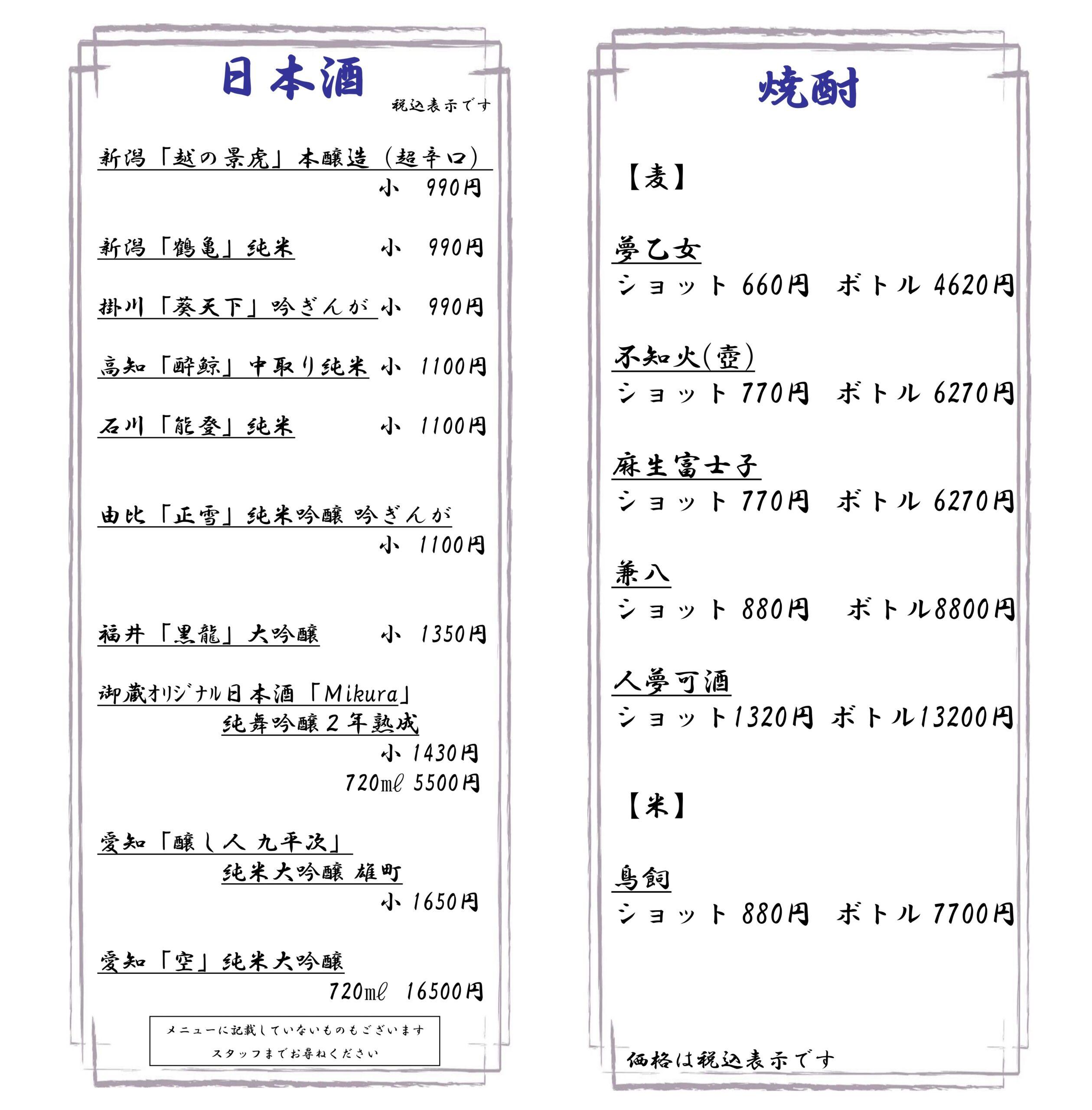 浜松市中央区千歳町、割烹みその千とせ店の隣にある御蔵別亭。「割烹みその千とせ店」のお料理をはじめ、イタリアで修行したシェフによる本格イタリアンまで 豊富なメニューをお楽しみいただけます。 シェフはワインにも精通しているのでワインセラーの中は珍しいワインが並びます。ソファー席もございますのでゆっくりお酒をお楽しみいただけます。