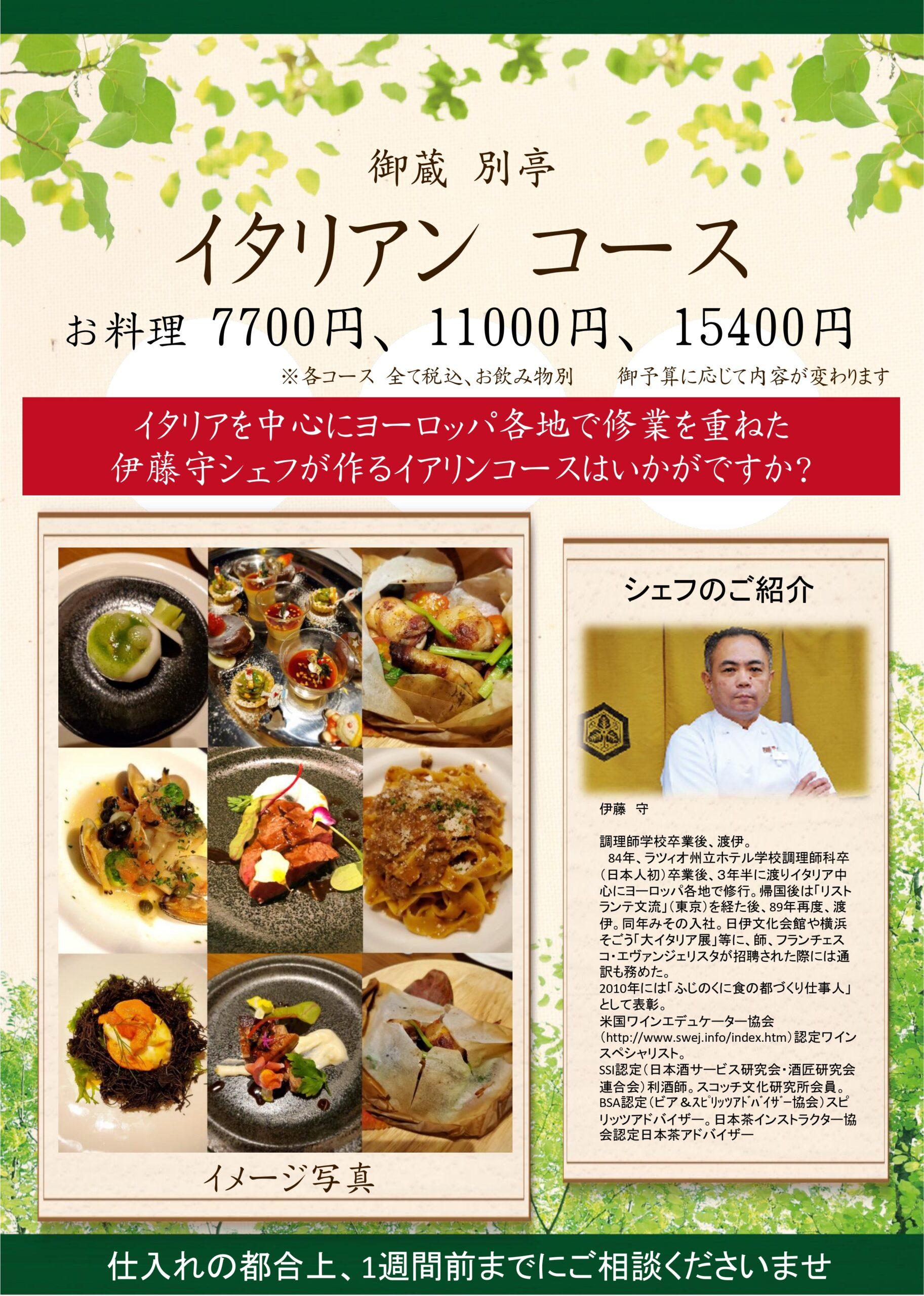ご予算に応じたコースメニューを シェフ伊藤守がお作り致します。
